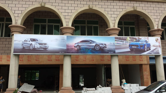 8月10日当天,星盟策划10名施工团队成员头顶骄阳,挥汗如雨,克服中暑潜在威胁在恶劣天气情况下,经过10个小时奋战,在天黑之前将门头品牌灯箱、奥迪全系画面、豪华品牌标示广告画完整施工布置到位。星盟策划公司品质工程师经过再三测试、检查每个细节,记录测试各项参数,最后得到聚鑫豪总经理肯定答复。对于我们严格按照流程、保质保量的工作态度,总经理极力赞赏,至此星盟策划该项目工程圆满结束。